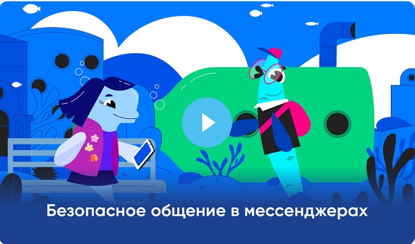 Главными героями урока выступают персонажи подводного города Нижнефорельска – блогер Антон Корюшкин и его одноклассница Белуха Оля. Вместе с ними учащиеся узнают, как настроить безопасный вход в мессенджер с помощью двухфакторной аутентификации, для чего нужен безопасный режим, а также как набор настроек «Семейная защита» помогает родителям обеспечить приватность для своих детей.